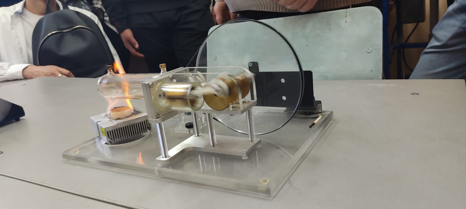 Николай Сергеевич Часовских познакомил ребят с работой моделей различных электростанций. Были представлены лабораторный комплекс «Гидроэнергетика - система радиально-осевая турбина - генератор», ветроэнергетическая система на базе синхронного генератора, система «Гидроэнергетика - турбина Пелтона - генератор», двигатель Стирлинга и модель водородной системы и др.