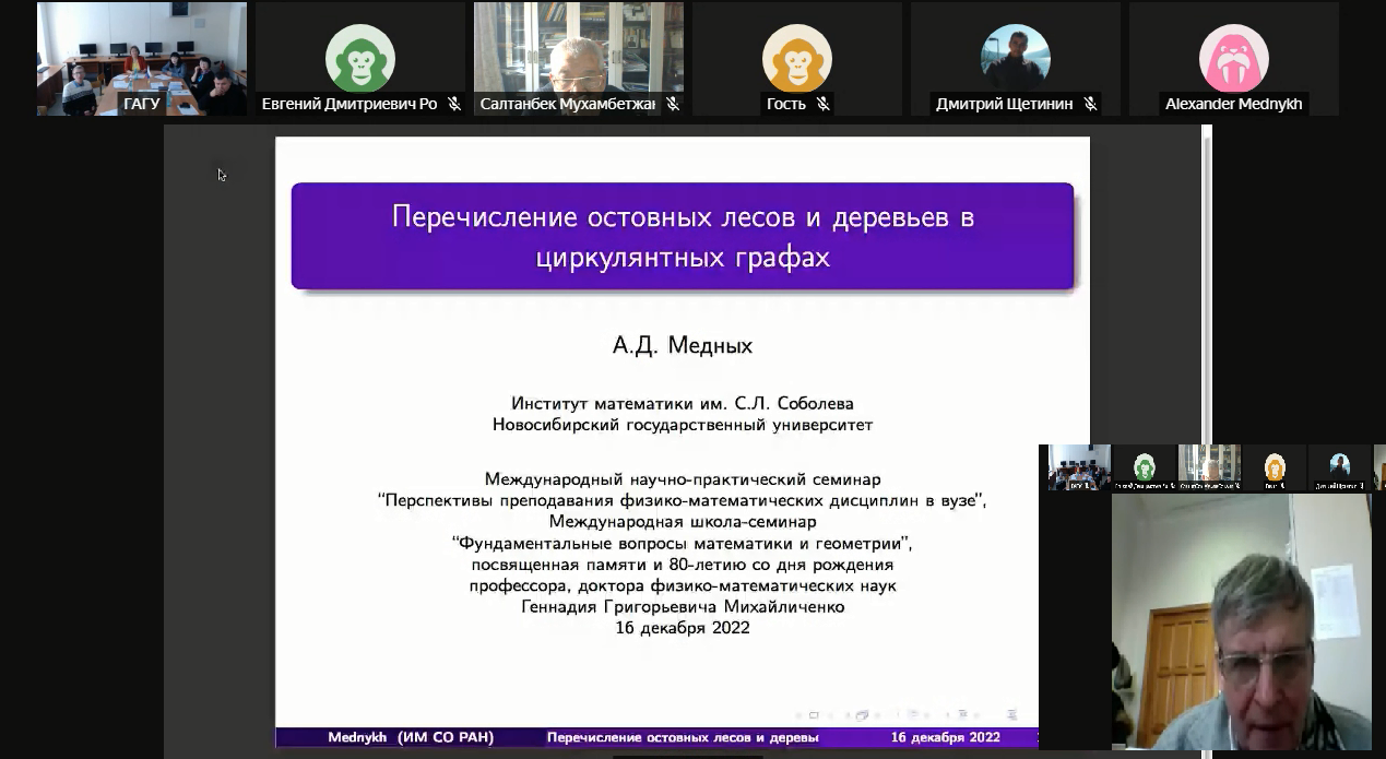 16 декабря на базе физико-математического отделения физико-математического и инженерно-технологического института (ФМИТИ) ГАГУ в рамках VI Международного научно-практического семинара «Перспективы преподавания физико-математических дисциплин в вузе» была проведена Международная научно-практическая школа-семинар «Фундаментальные вопросы математики и геометрии», посвященная памяти и 80-летию со дня рождения доктора физико-математических наук, профессора Геннадия Григорьевича Михайличенко.