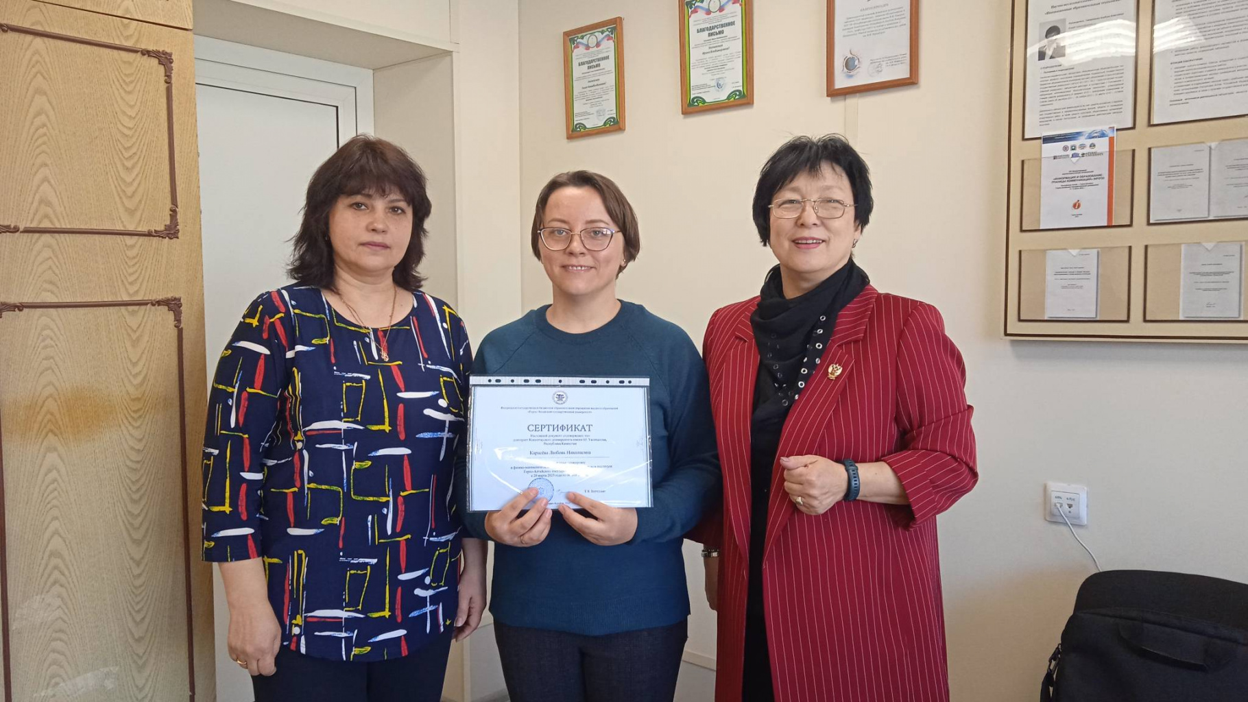 Во время научной стажировки Л.Н. Карасевой удалось поучаствовать в работе секции «Прикладная математика» городского НОУ, а также во Всероссийском семинаре для учителей математики, физики и информатики, проходившем 23.03.2023 на базе МБОУ «"Средняя общеобразовательная школа № 12 города Горно-Алтайска».