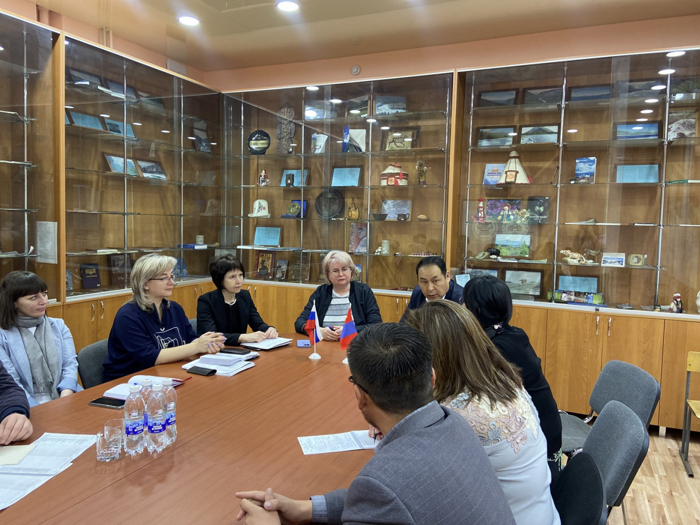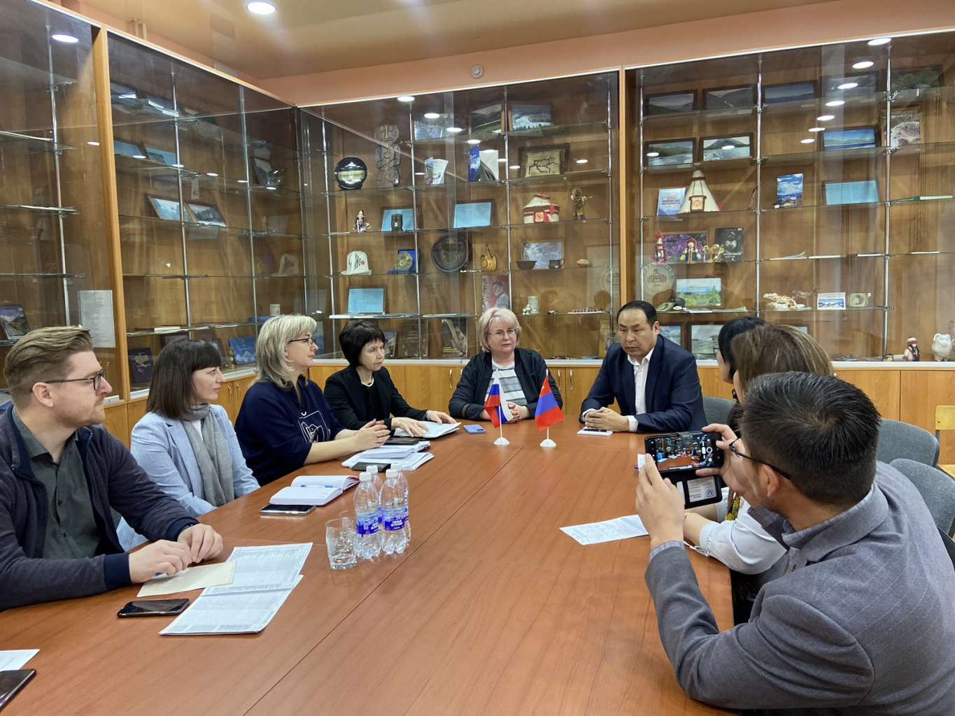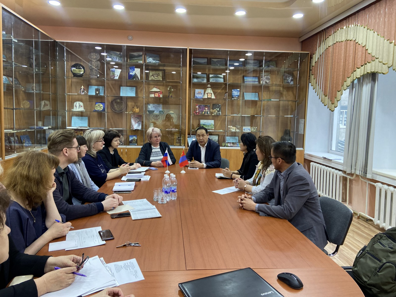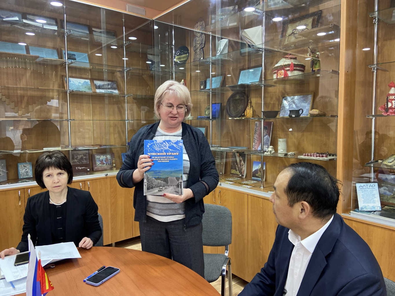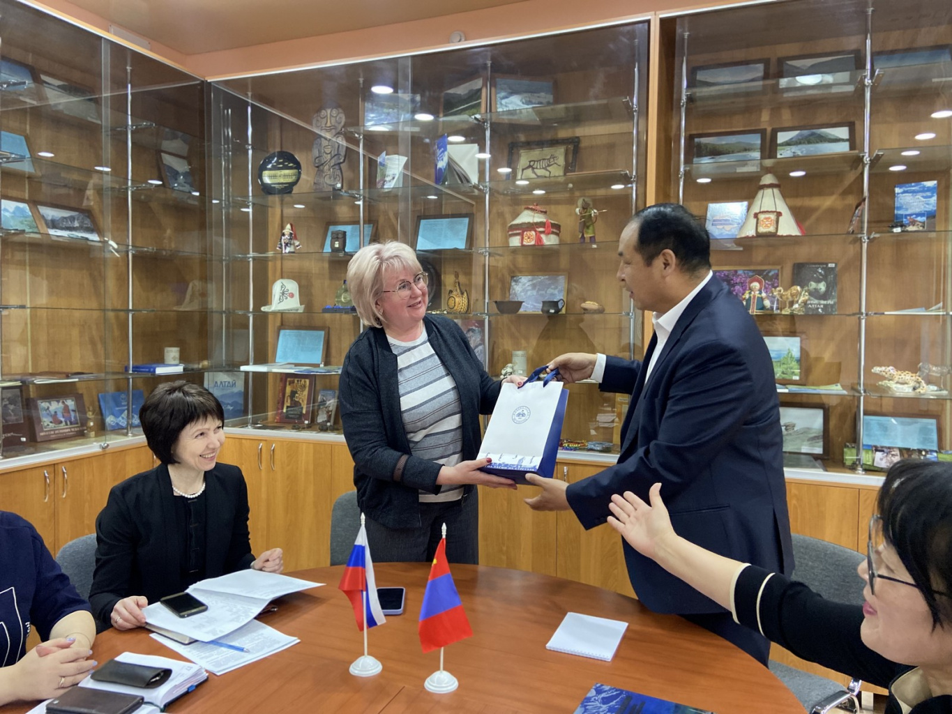 25 апреля состоялся визит делегации Ховдского филиала монгольского государственного университета в составе проректора по учебной работе Гантумур Баасандорж, заведующей кафедрой иностранных языков и культурологии Одончимег Тумээ, профессором кафедры географии и геологии Отгонбаяр Демберэл, лектором кафедры географии и геологии Билектмандах Чунтай. Со стороны Горно-Алтайского государственного университета в работе совместного заседания приняли участие: и.о. ректора Наталья Гусельникова, проректор по учебной работе Татьяна Куриленко, проректор по научной работе Мария Сухова, помощник ректора по международной деятельности Дарья Киреева, заведующий кафедрой русского языка Павел Алексеев, декан экономико-юридического факультета Юлия Газукина, директор физико-математического и инженерно-технологического института Наталья Попеляева, декан естественно-географического факультета Оксана Климова, доцент кафедры иностранных языков и методики преподавания Иван Кольцов.