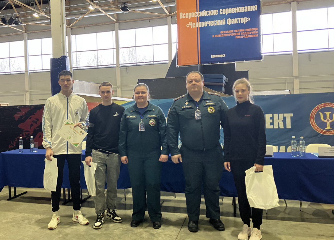 Студенты 1 курса Горно-Алтайского государственного университета Арина Зяблицкая, Александр Фефелов, Эдгар Пушкунов, обучающиеся в 1112 гр. по профилям подготовки «Физкультурно-оздоровительная деятельность» и «Безопасность жизнедеятельности», 20 апреля приняли участие в региональном этапе всероссийских соревнований «Человеческий фактор». Соревнования проводились в Красноярске на базе Сибирского филиала Центра экстренной психологической помощи МЧС Росси (в Центре экстремального спорта «Спортэкс») в рамках реализации федерального проекта «Научись спасать жизнь!». В соревнованиях приняли участие 16 студенческих команд из городов Сибирского федерального округа: Томска, Красноярска, Барнаула, Омска, Новосибирска, Иркутска, Кемерова, Абакана (Республика Хакасии), Кызыла (Республика Тыва) и Горно-Алтайска (Республика Алтай).