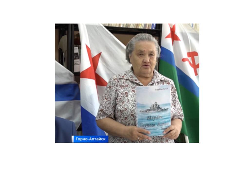 Елизавета Юрьевна Салбашева, выпускница нашего вуза, написала книгу «Моряки Горного Алтая». В ней представлен самый обширный материал о связи истории Горного Алтая с военно-морским флотом, в том числе - сведения времен Великой Отечественной войны о военных моряках, призванных военными комиссариатами Ойротской автономной области.