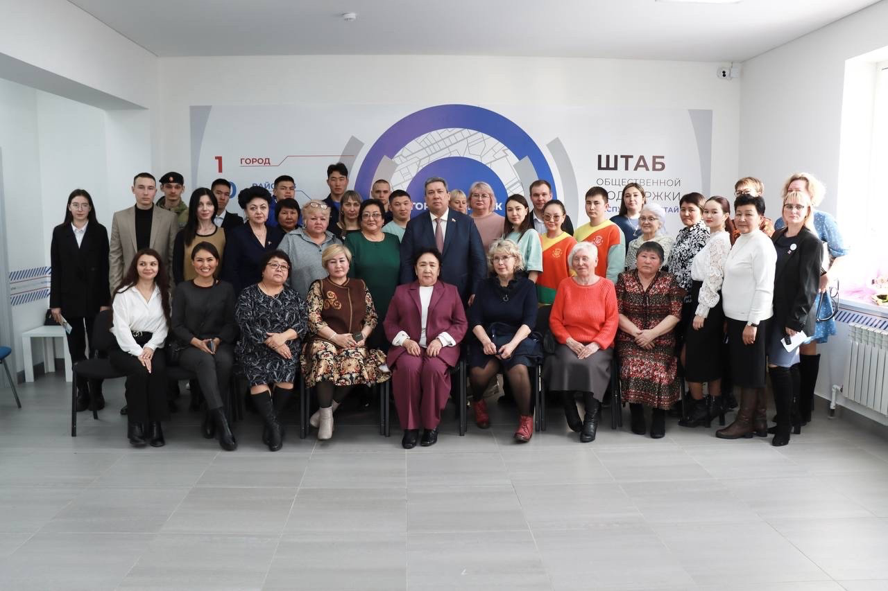 Вчера на базе Штаба общественной поддержки Республики Алтай состоялась встреча сенатора Российской Федерации Владимира Полетаева с представителями студенческих объединений, РОО «Женщины Алтая - Алтайдын Эпшилери», других общественных организаций и различных ведомств региона. Важно отметить, что в зале присутствовали представители разных поколений.