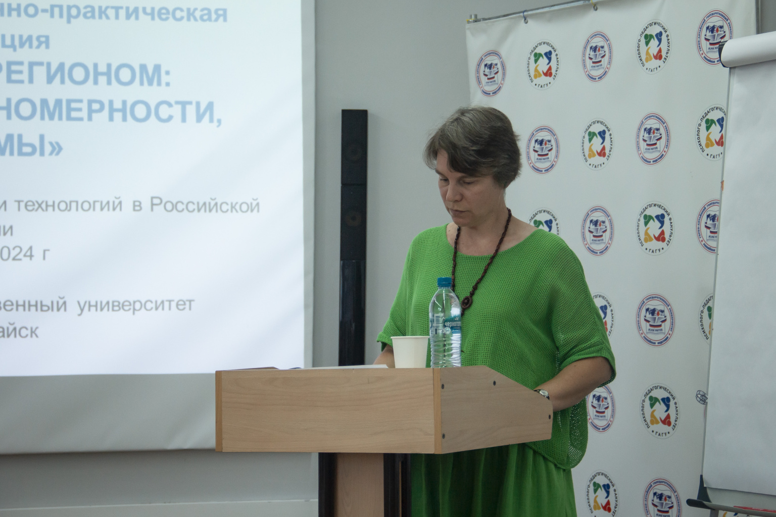 Актуальность темы конференции в условиях перехода к устойчивому развитию страны в целом и ее регионов, а также необходимость постоянного совершенствования, поиска и развития инновационных форм и методов управления региональными системами были отмечены в приветственном слове к участникам конференции, с которым обратилась исполняющая обязанности ректора Горно-Алтайского государственного университета Наталья Владимировна Гусельникова.