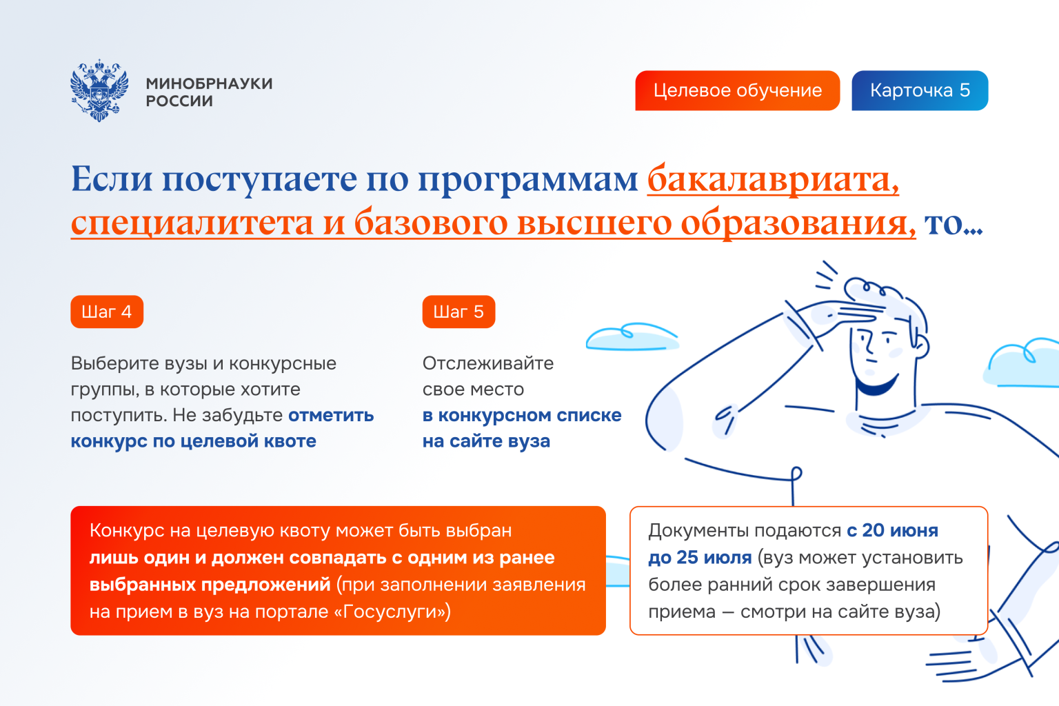 ! Документы подаются с 20 июня до 25 июля (вуз может установить более ранний срок завершения приема — смотри на сайте вуза).