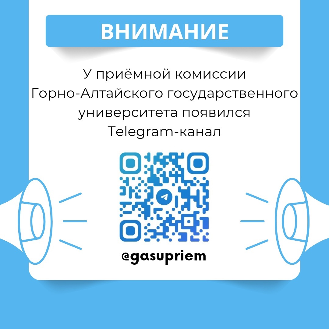 Уважаемые абитуриенты, рады сообщить, что у Приёмной комиссии Горно-Алтайского государственного университета появился свой телеграм-канал.