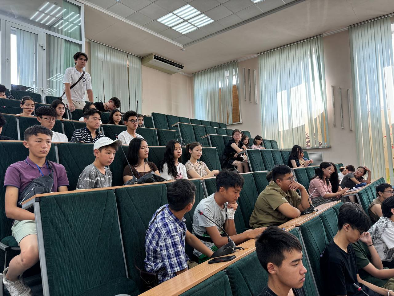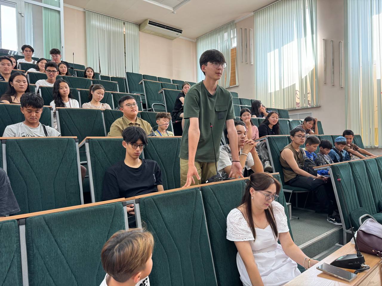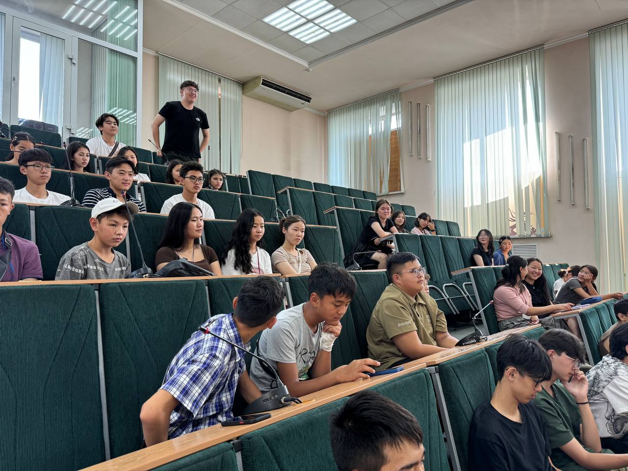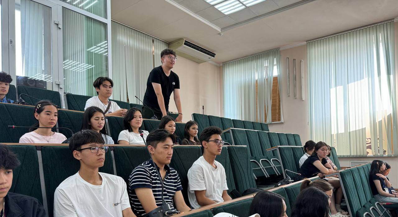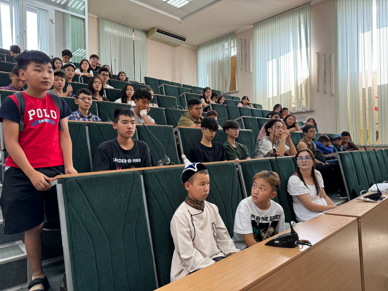 Наталья Владимировна и Радмила Пекпеева побеседовали с учениками в формате вопрос-ответ. Гости из Монголии рассказали на русском языке о своем желании поступать в вузы России, многие из них - в ГАГУ.