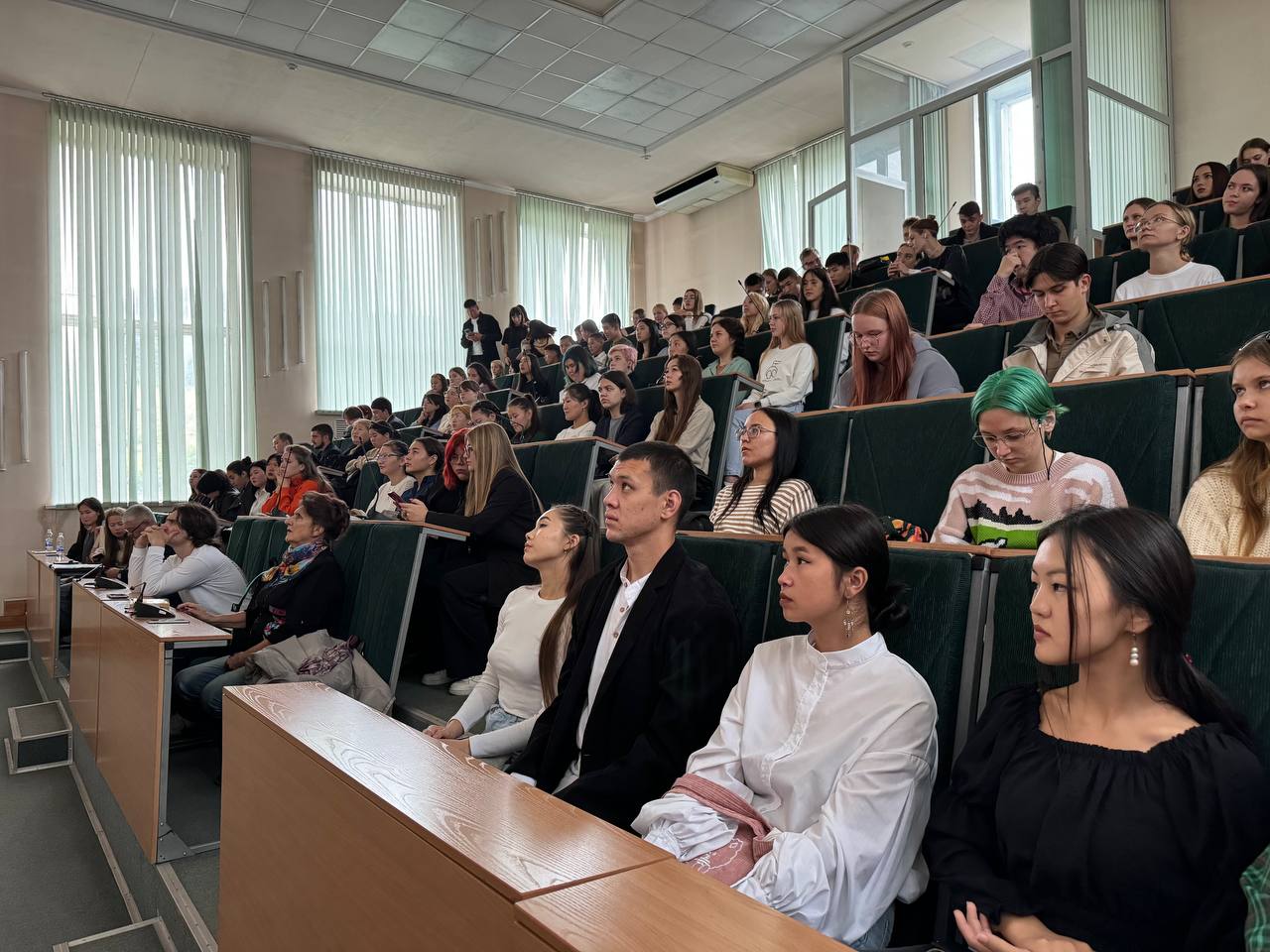 В конце мероприятия активным студентам раздали продукцию с символикой Российского союза молодежи.