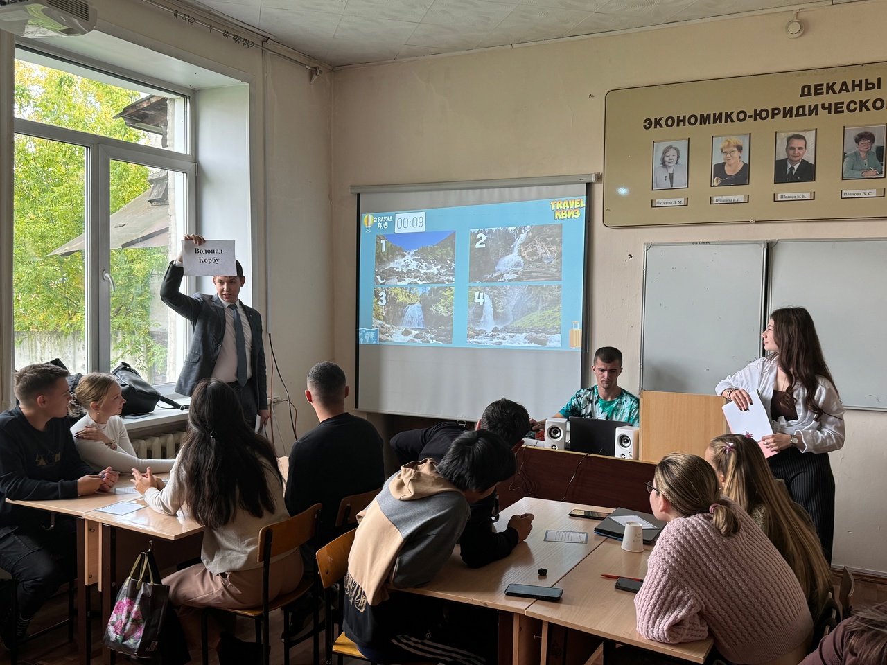 В командной интеллектуально-развлекательный игре «Travel-квиз» 5 команд из числа студентов экономико-юридического факультета отправились «в путешествие» по Алтаю, городам и странам мира. Игра состояла из 6 раундов: «Вокруг света», фотоохота, кавер-версия, «Орел и решка», «Страна+», «Готовим травяной чай».
