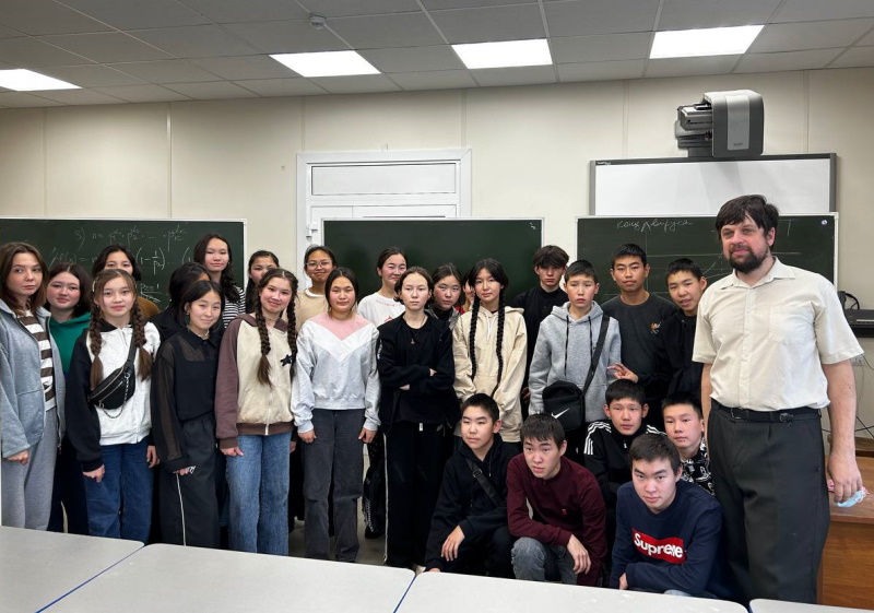 31 октября «В гостях у учёного» на МФМ побывали учащиеся 8-10 классов Онгудайской средней школы им. С.Т. Пекпеева. Евгений Владимирович Кайгородов, к.ф.-м.н., доцент кафедры математики, физики и информатики провёл со школьниками профориентационную беседу: «Кто такой современный математик и почему он нужен России?».