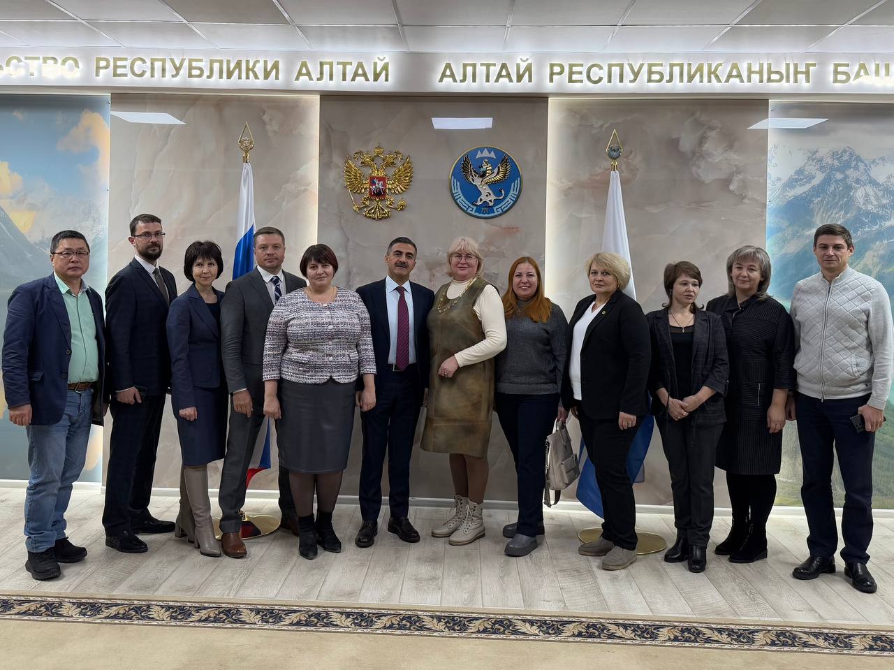 Далее все гости собрались в Правительстве Республики Алтай, где вместе Эжером Малчиновым, исполняющим обязанности Первого заместителя Председателя Правительства Республики Алтай, Александром Прокопьевым, заместителем Председателя Правительства Республики Алтай, Андреем Цыгулевым, министром сельского хозяйства Республики Алтай, Константином Боровых, заместителем министра экономического развития Республики Алтай, и Натальей Гусельниковой, и.о. ректора ГАГУ, обсудили участие вуза в разрешении основных проблем отрасли сельского хозяйства Республики Алтай путем проведения прикладных исследований, развития партнерских отношений с ключевыми сельхозпроизводителями, профильными научными организациями и вузами Сибирского Федерального округа.