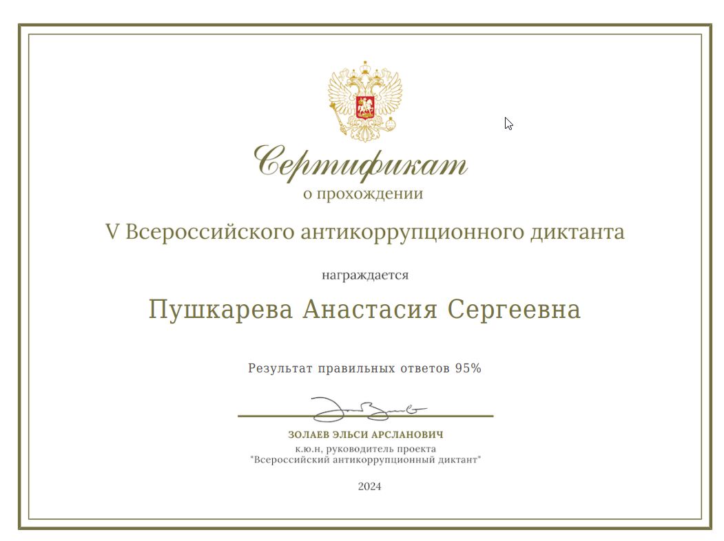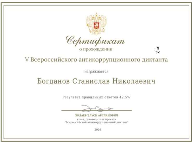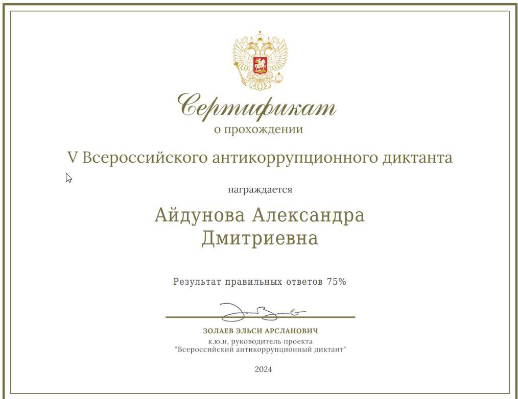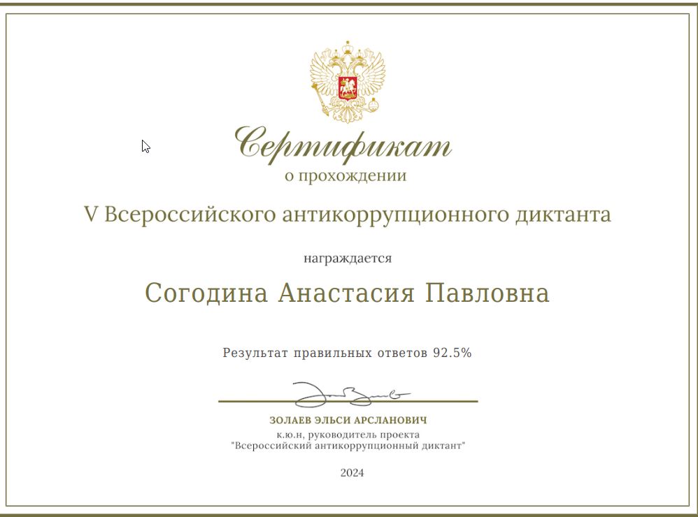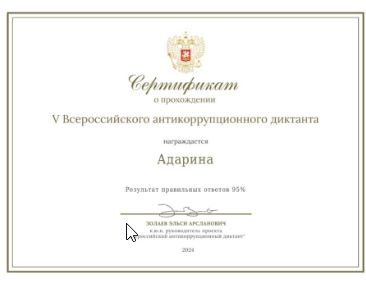 Диктант был организован с образовательной целью и предоставил возможность оценить и улучшить знания в важной для общества области противодействия коррупции.