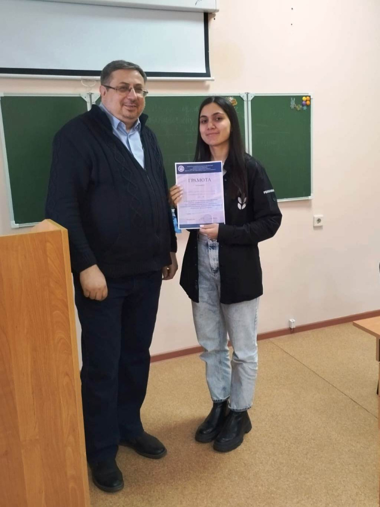 Гусейнова Эльмира (420 гр.) с исследованием «Лингвокультурологический компонент содержания обучения русскому и родному языкам в школе» (научный руководитель – к.ф.н., доцент Драчева С.И.) Доклад отмечен грамотой.