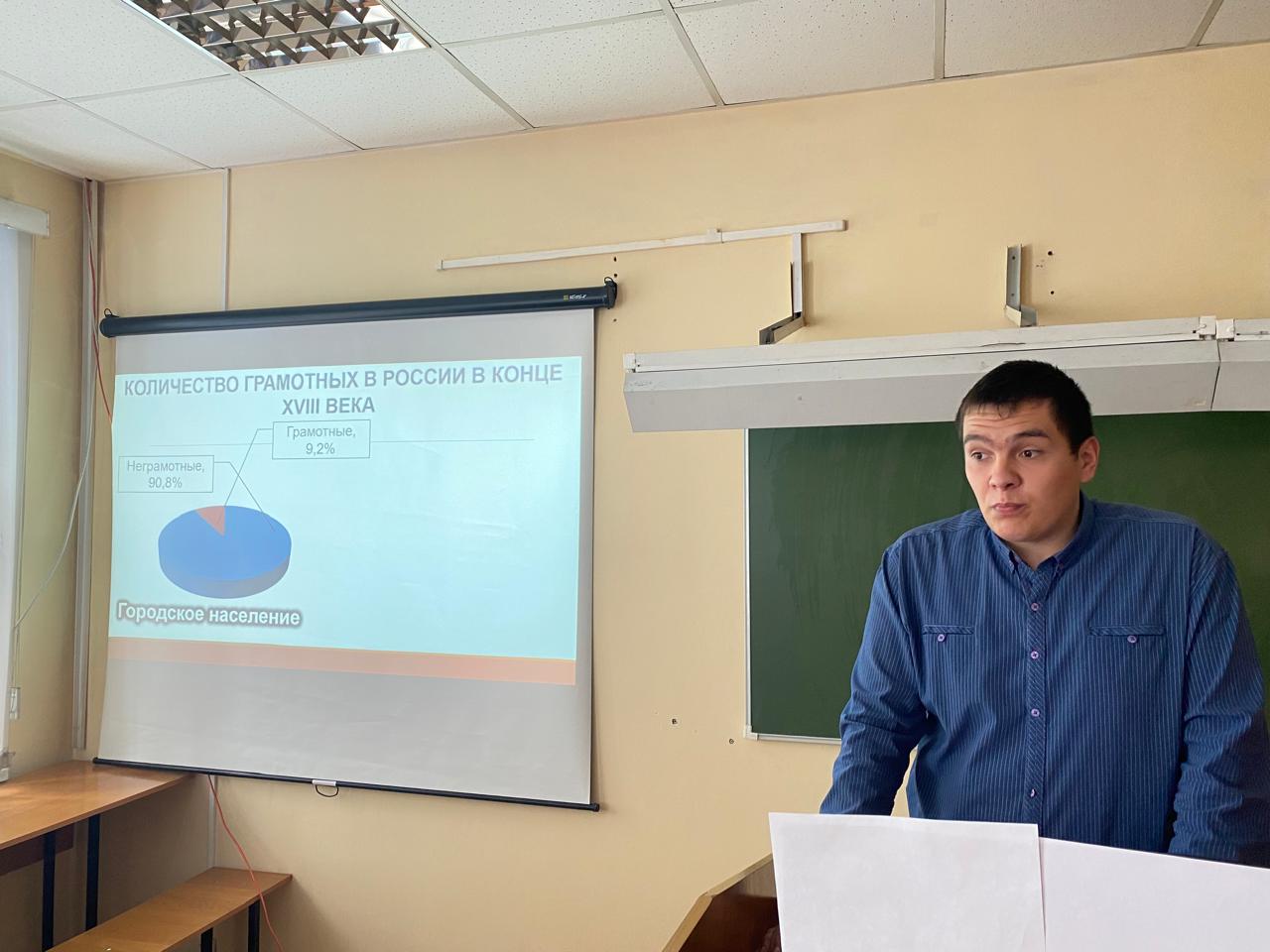 4 апреля на ИФФ в рамках LIX Научно-практической конференции студентов, аспирантов и молодых ученых Горно-Алтайского государственного университета, посвященной 80-летию Победы в Великой Отечественной войне и Десятилетию науки и технологии, работала секция «Актуальные вопросы истории России».