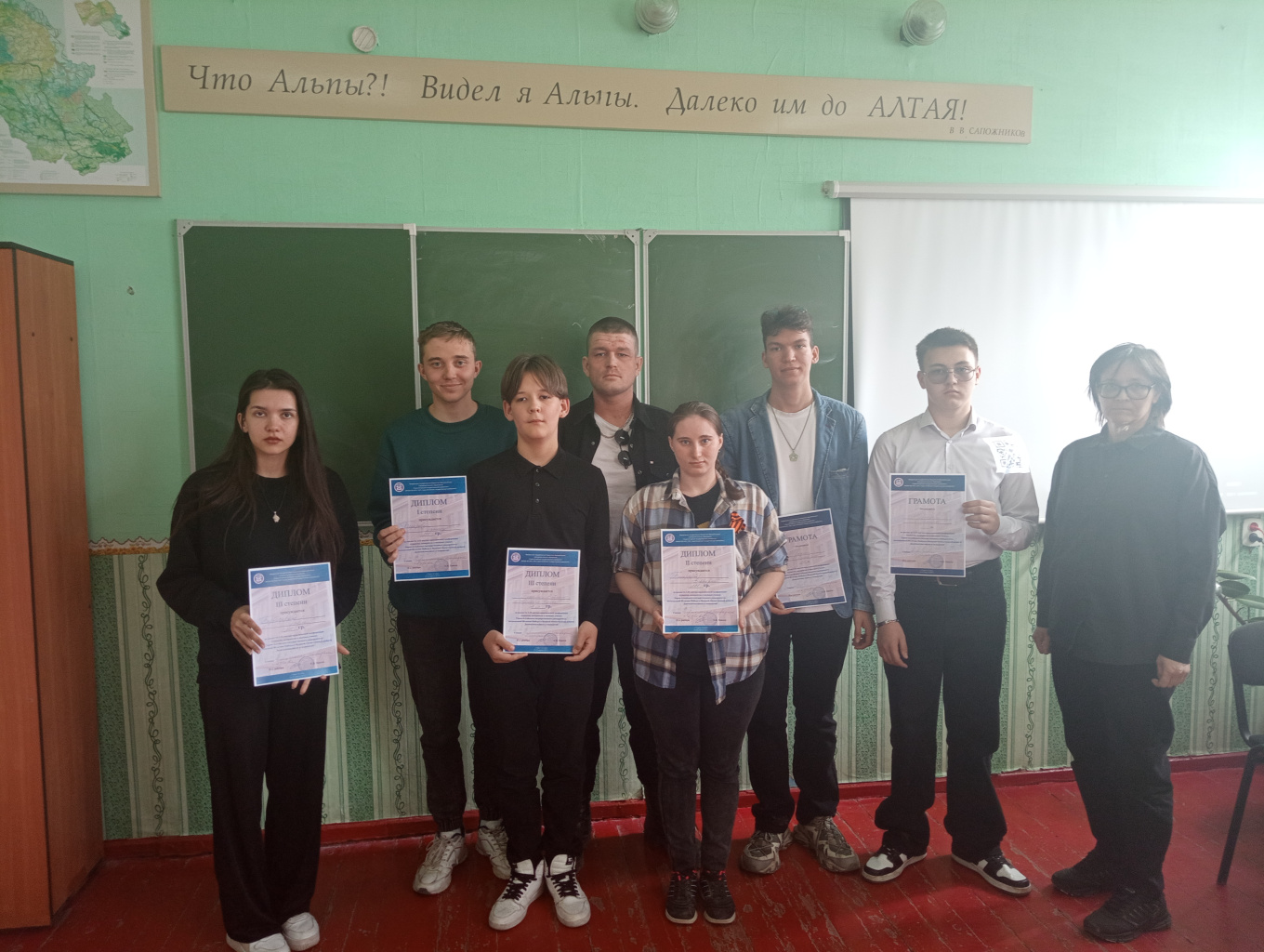 - дипломами III степени награждены: Барбачакова Дарья (211 гр.) за доклад на тему «Прогноз численности населения Западно-Сибирского экономического района» (научный руководитель – к.г.н., доцент Каранин А.В.), учащиеся Чергинской школы Бессонов Виталий и Арбакова Элина (7 кл.) за доклады «Загадки природы: окаменелости Кош-Агачского района Республики Алтай» и «Археологические объекты геопарка "Алтай"» (руководитель Бархатова О.П.);