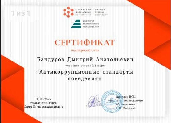 Эти курсы были организованы Центром противодействия коррупции и правовых экспертиз департамента по профилактике коррупционных правонарушений ФГАОУ ВО «Сибирский федеральный университет» в рамках федеральной программы стратегического академического лидерства «Приоритет-2030».
