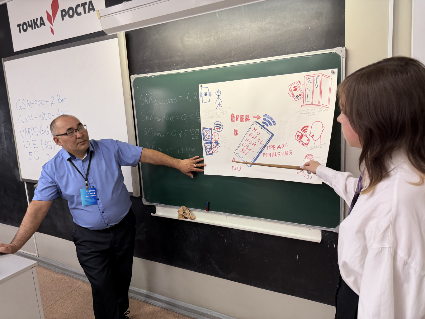 Методикой проведения урока по теме «Влияние электромагнитных волн на организм человека (на примере мобильной связи)» в 9 классах с применением цифровых лабораторий прикладной физики поделился учитель физики, руководитель Центра образования естественно-научной направленности «Точка роста» (далее, центр «Точка роста») при школе Самыр Сергеевич Кудачин, показав прикладную направленность физики и высокий профессионализм. Также Самыром Сергеевичем был представлен практический опыт работы модели центра «Точка роста», базовой составляющей которой является проектная деятельность школьников с выходом на разного уровня (регионального, всероссийского) представления исследовательских докладов. После завершения открытого урока заведующим кафедрой математики, физики и информатики ФМФ ГАГУ, кандидатом физико-математических наук Радой Александровной Богдановой был проведен методический разбор, включивший структуру занятия, дидактические требования, а также необходимое техническое сопровождение для проведения урока по физике в цифровом формате.