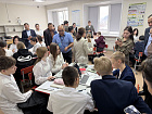 С приветственным словом к гостям обратилась директор Наталья Павловна Хабарова, познакомив гостей с Точкой роста и музеем школы. Для делегации учителей были представлены исторические очерки школьной жизни, основные направления развития школы с учетом современных цифровых требований в образовании.